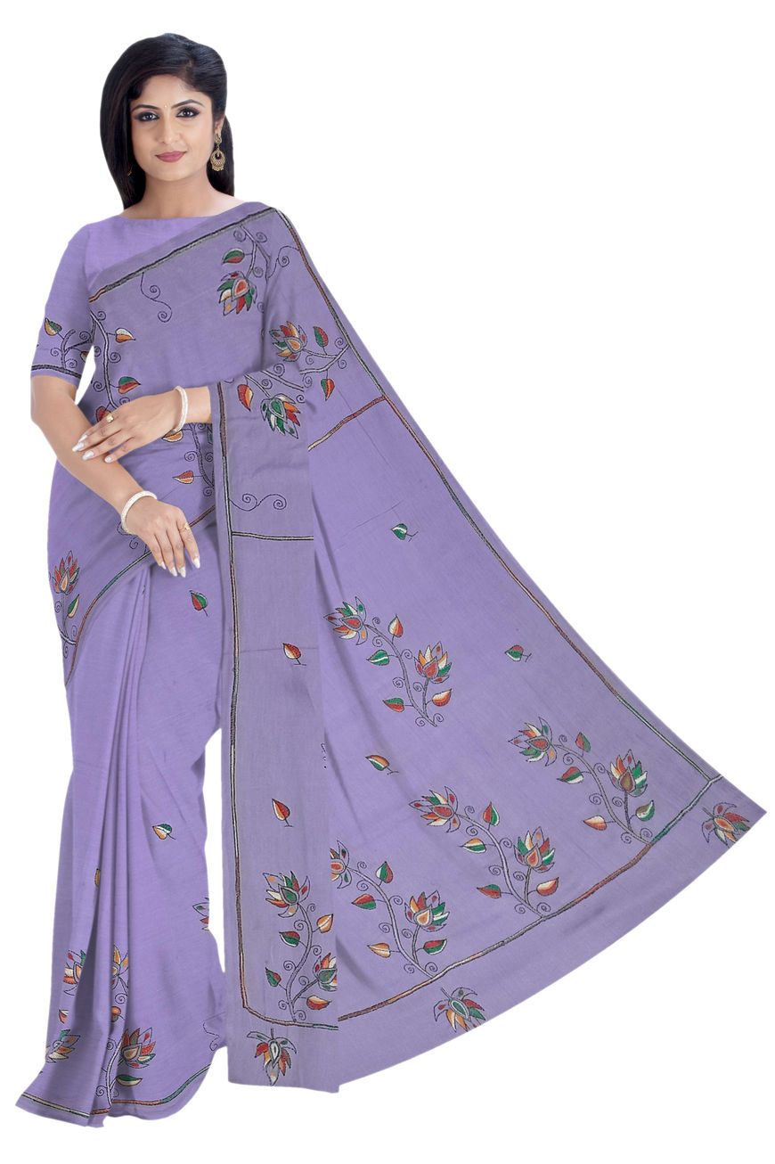 - Soft Cotton Silk Saree in Hand Made Katha embroidery work