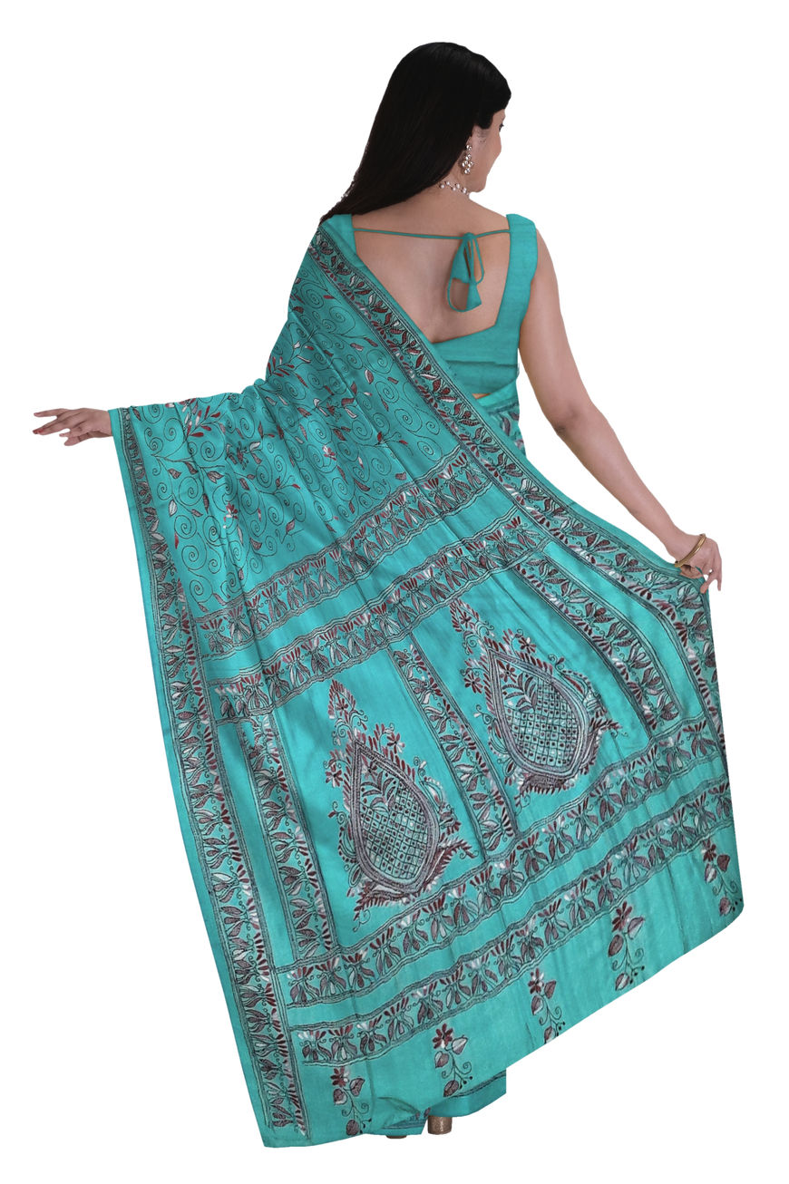 - Soft Bhagalpuri Silk Saree in Hand Made Katha embroidery work