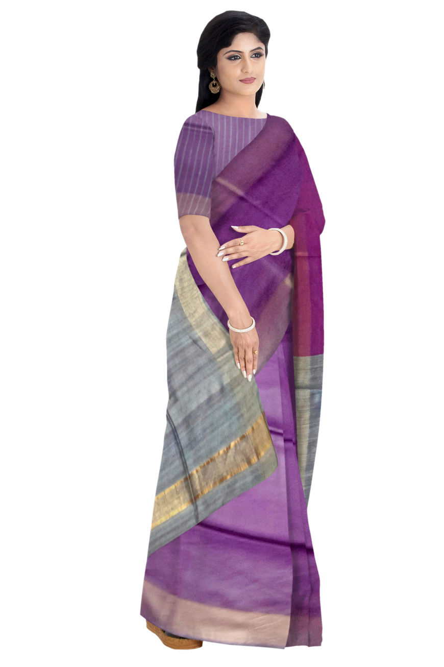 - Stepple Silk Jari Stripe Saree in Purple Colour with light Blue Gitcha Silk Pallu.