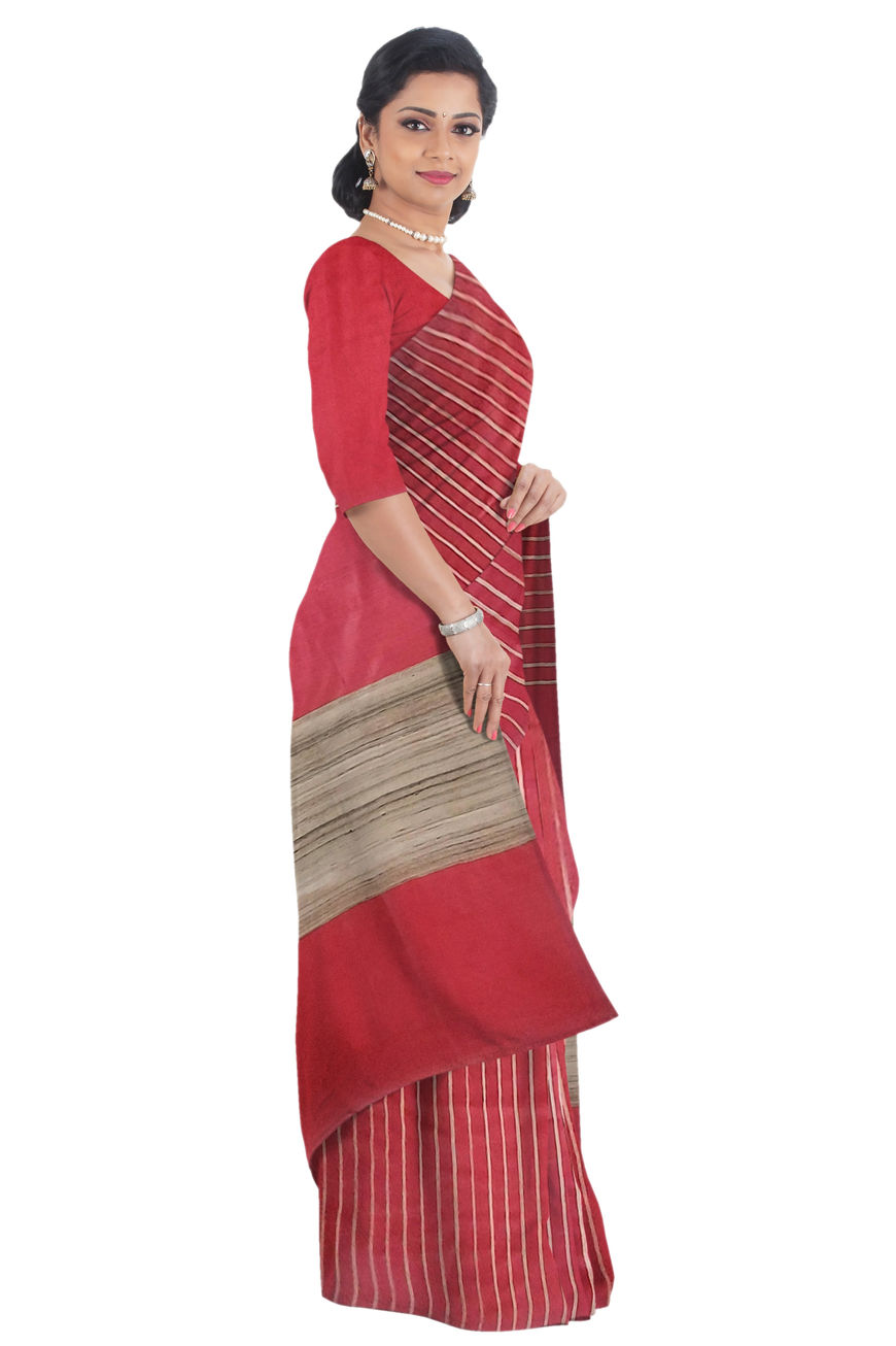 - Stepple Silk Saree in Red Colour with Natural Gitcha Silk stripes in Pallu.