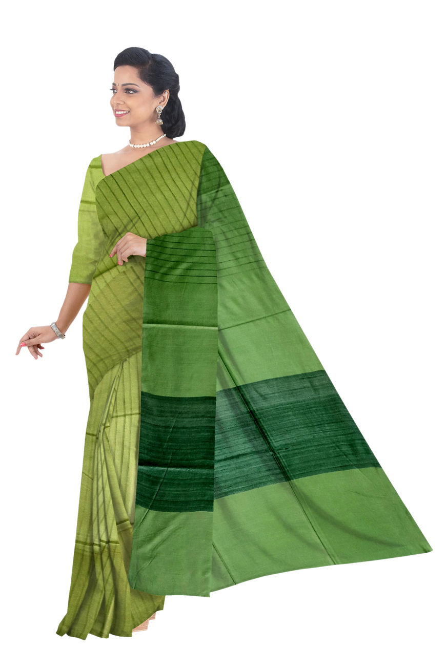 - Stepple Silk Saree in Lemon Geen Colour with Dark Green Gitcha Silk stripes in Pallu.