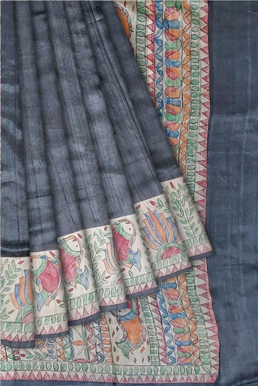 Madhubani Hand Painted Tussar Gitcha Silk Saree