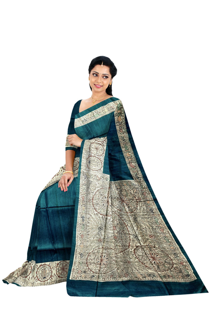 Madhubani Hand Painted Tussar Gitcha Silk Saree